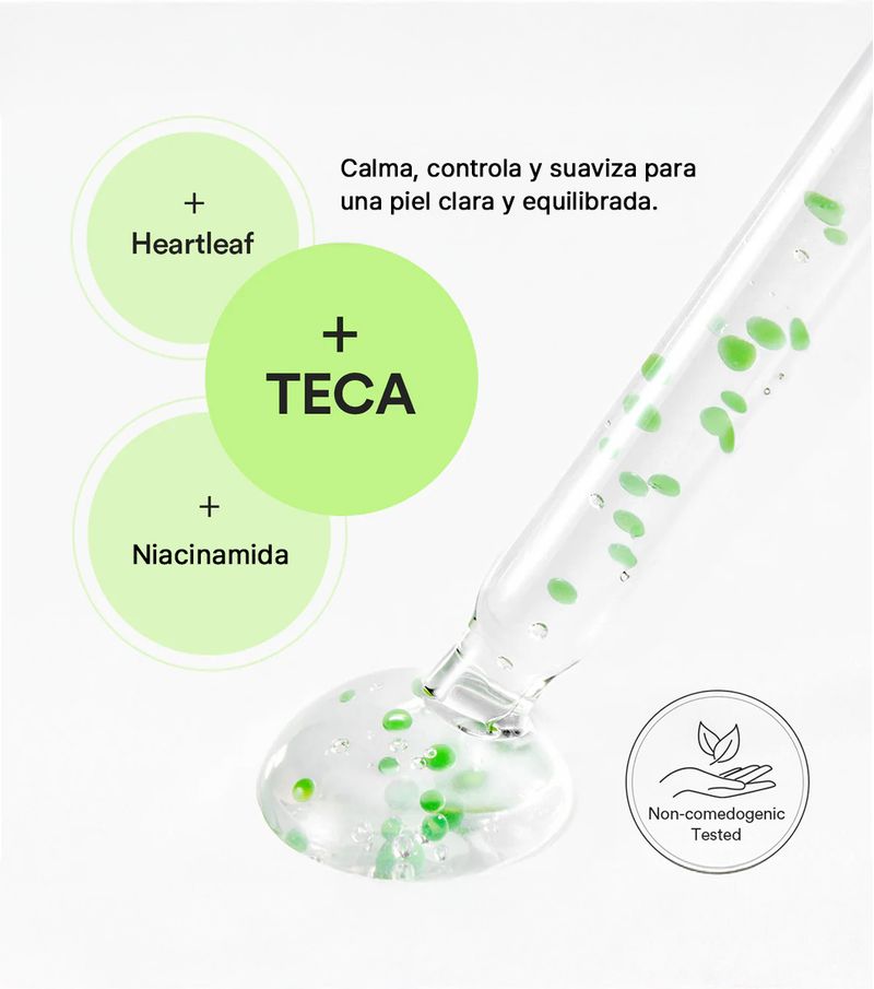Este serum ofrece cuidado intensivo para pieles acneicas. Su TECA Capsule, extracto concentrado de Centella Asiática, proporciona un efecto descongestivo y repara la piel. Con Niacinamida y Aplephenon, ayuda a atenuar marcas y manchas oscuras producto del acné. En solo 7 días, alivia y atenúa el acné, reduce el sebo y minimiza los poros mientras hidrata en profundidad, dejando una piel equilibrada y visiblemente mejorada.