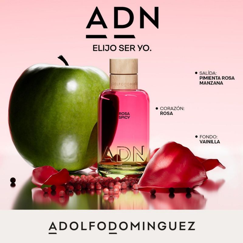 Rosa Spicy, contiene aceite esencial de Rosa, con propriedades que estimulan tu creatividad e inspiración. Un perfume diseñado para potenciar quien eres. Elige ser tú.