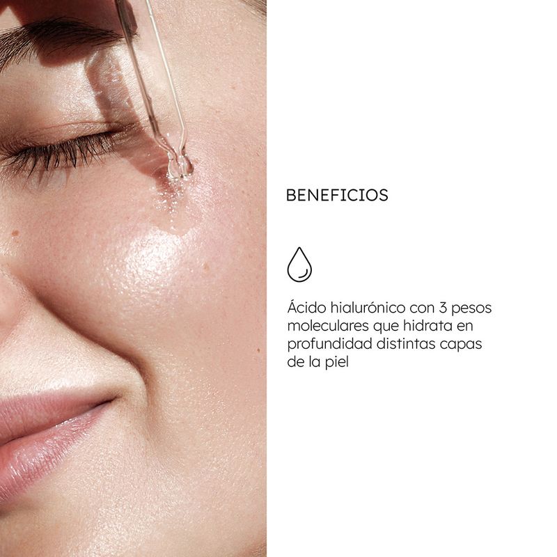 MÁS SOBRE EL PRODUCTO: Serum concentrado de ácido hialurónico al 2% con 3 pesos moleculares diferentes para hidratar en profundidad en distintas capas de la piel. Aumenta la retención de agua a todos los niveles, previene líneas de expresión y trata las arrugas ya existentes.