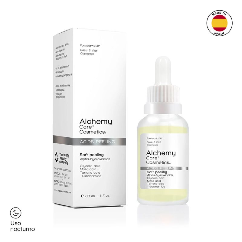 MÁS SOBRE EL PRODUCTO: el Peeling suave con alfa hidroxiácidos (AHA’s) y niacinamida es el aliado perfecto para exfoliar profundamente y renovar las células de una manera suave e intensa a la vez. La fórmula contiene ácido glicólico, ácido málico, ácido tartárico y vitamina B3 para aportar una acción antioxidante, antiinflamatoria, hidratante y anti-manchas a la propia exfoliación. Un básico en la rutina de belleza para todo tipo de piel. Oil-free. Sin parabenos, sin aceites minerales. No testado en animales.