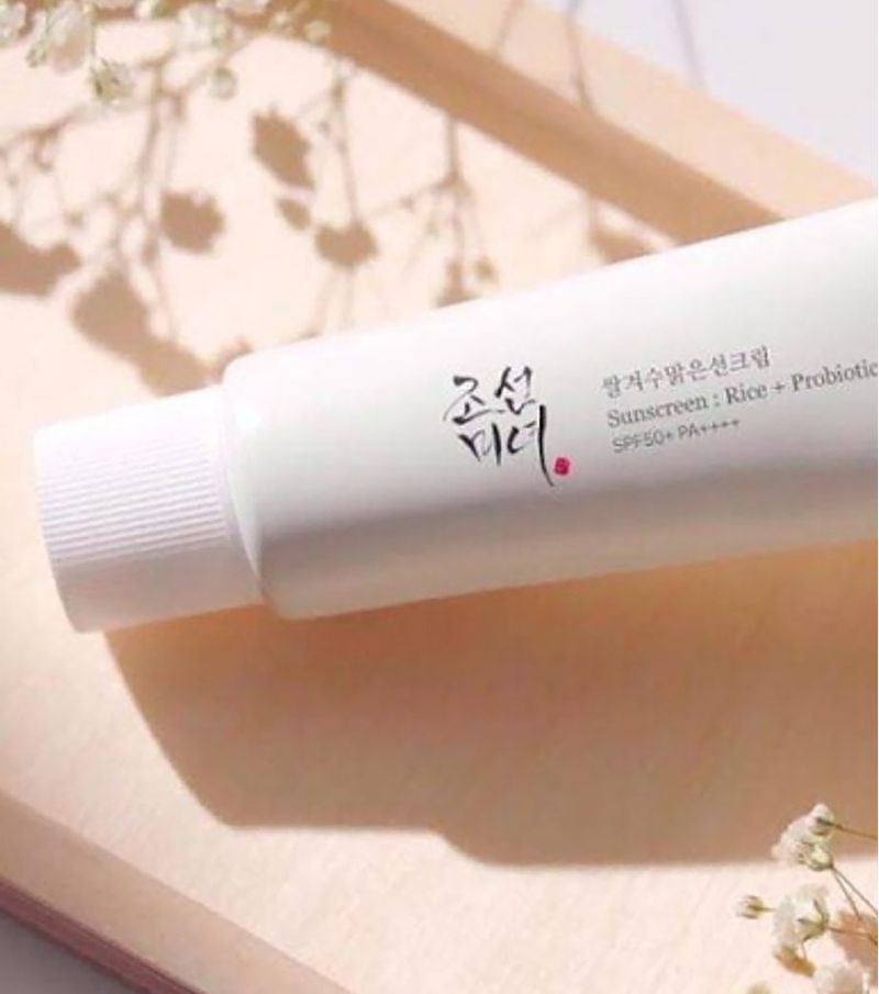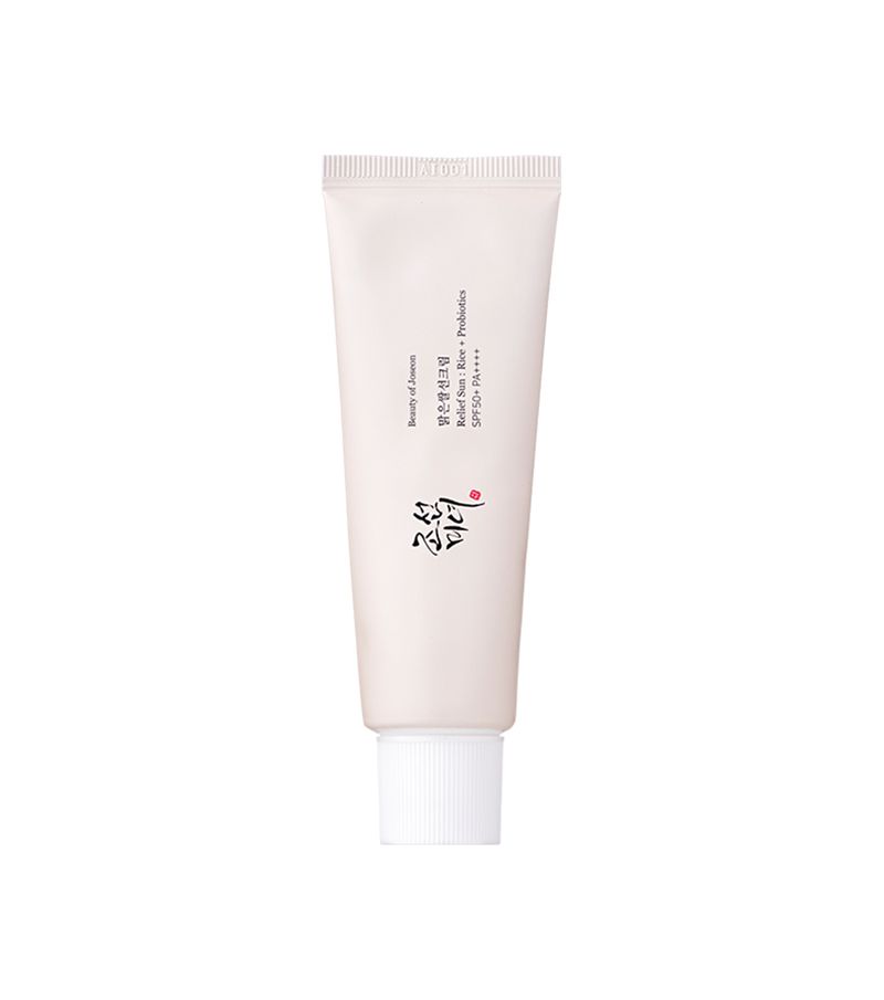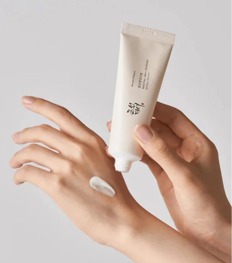 Protector solar orgánico SPF50+ PA++++ con extracto de arroz y probióticos que hidrata y protege sin dejar residuos. Apto para piel sensible, sin ingredientes dañinos ni filtros que afecten los arrecifes.