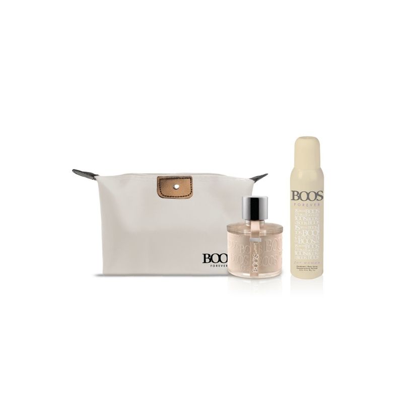 El set Boos Forever es una fragancia femenina elegante y envolvente que combina un Eau de Parfum de 100 ml con un desodorante corporal de 127 ml.