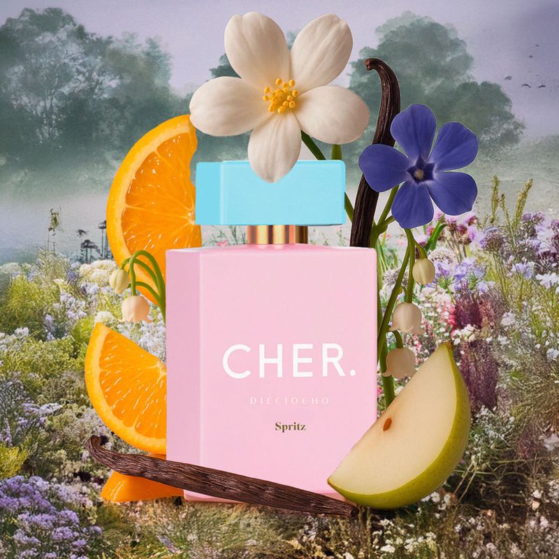 Cher Dieciocho Spritz es una fragancia frutal-floral que celebra la alegría de vivir, los encuentros al aire libre y la ligereza de la temporada más feliz del año. Joven, vibrante y chispeante, combina frescura y sofisticación en un aroma que se vuelve irresistible.