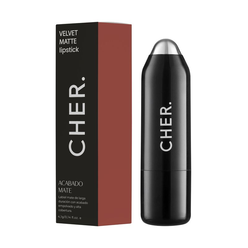 Descubrí nuestro Velvet Matte Lipstick, un labial de larga duración con acabado empolvado y cobertura excepcional. Su fórmula ultra pigmentada y aterciopelada asegura un look mate impecable durante horas, manteniendo tus labios sensuales e intensamente pigmentados, con una hidratación duradera