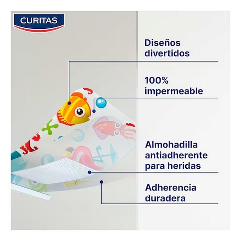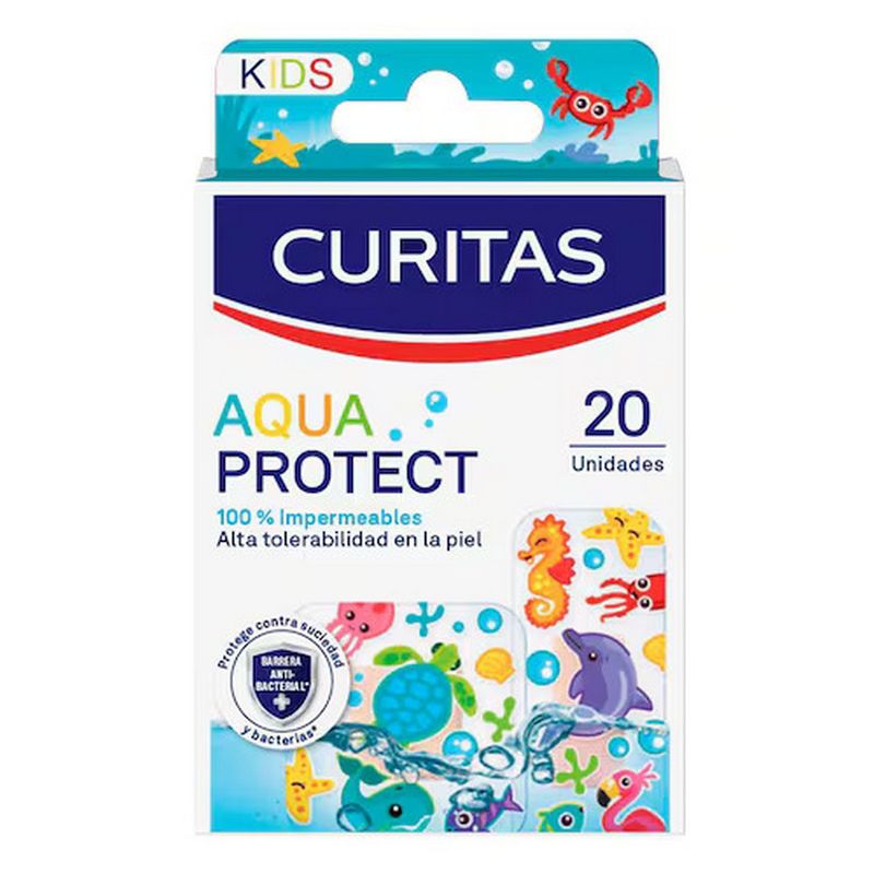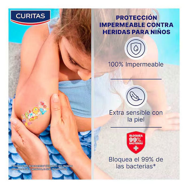 CURITAS Aqua Protect Kids son 100% impermeables, e ideales para cubrir y proteger heridas menores al nadar o ducharse.