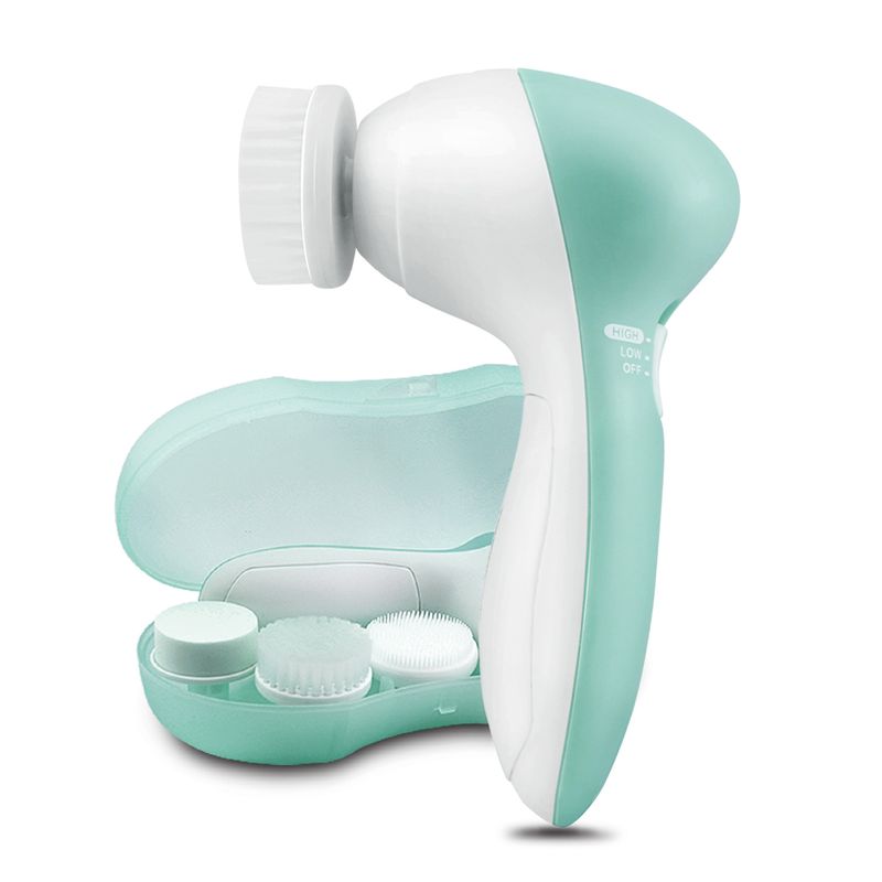 El set incluye 5 piezas intercambiables para diferentes funciones de limpieza y cuidado facial.