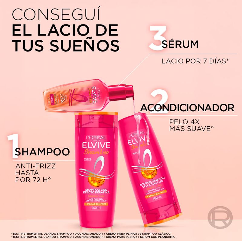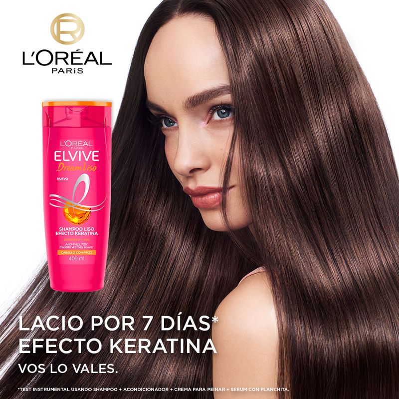 ¿Pelo con frizz? Conoce la revolución de Elvive Dream Liso, nuestra primera rutina de Liso Efecto Keratina en casa. Su fórmula enriquecida con Keratina V + AHA con menos frizz #LisoEfectoKeratina