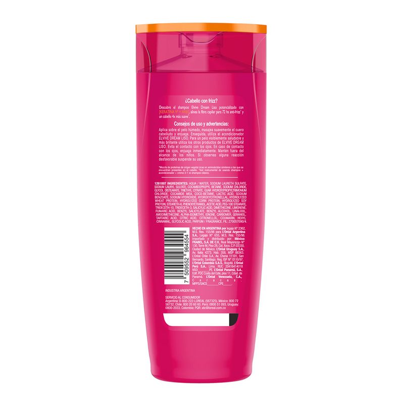 Aplica sobre el pelo húmedo, masajea suavemente el cuero cabelludo y enjuaga. Enseguida, utiliza el acondicionador ELVIVE DREAM LISO. Para un pelo visiblemente saludable y más brillante utiliza los productos de ELVIVE DREAM LISO. Evita el contacto con los ojos. En caso de contacto con los ojos, enjuaga inmediatamente. Mantén fuera del alcance de los niños. Si observas alguna reacción desfavorable suspende su uso.
