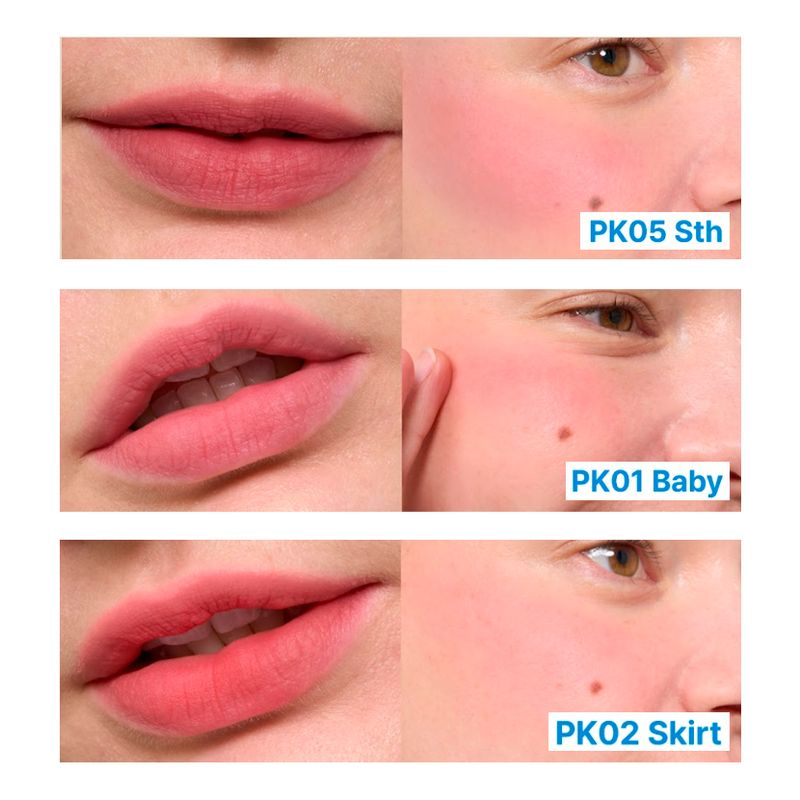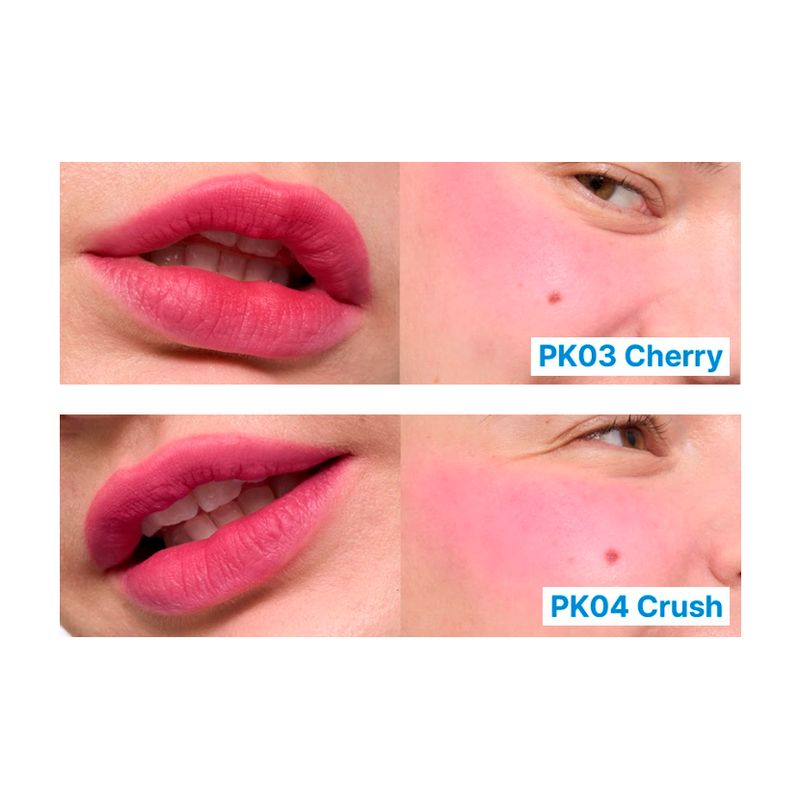 Labial y rubor dos en uno que se difumina en la piel y suaviza delicadamente, brindando a los labios y mejillas un aspecto aerografiado al combinar los beneficios de un rubor en crema y uno en polvo.