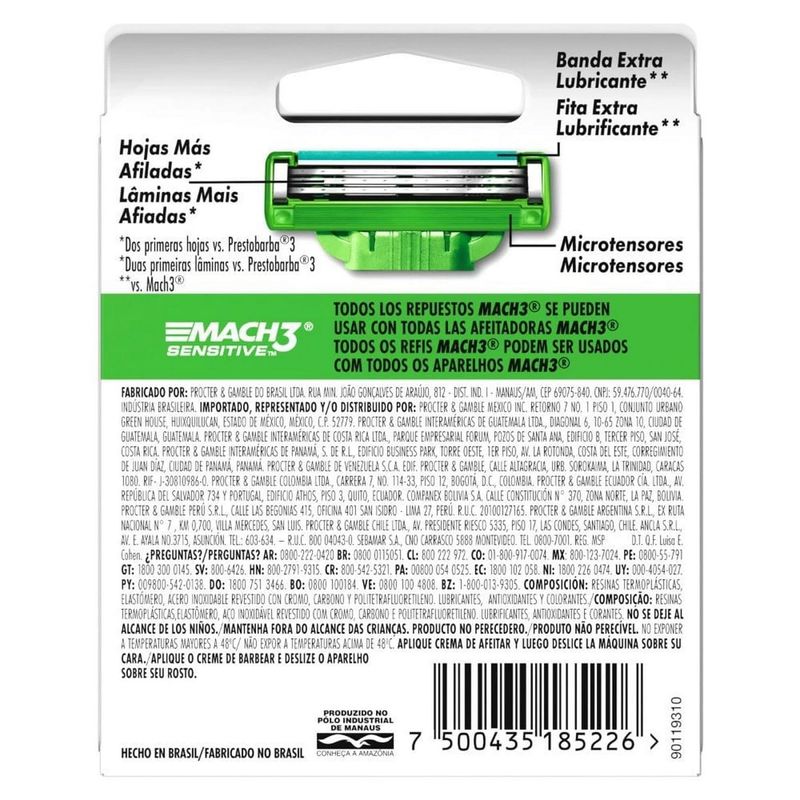 Además, cuentan con una cabeza flexible que se ajusta al contorno de tu cara y 10 microtensores que alisan la piel para brindarte una afeitada más al ras. Todos los cartuchos de la familia MACH3 se pueden usar con cualquier mango MACH3.