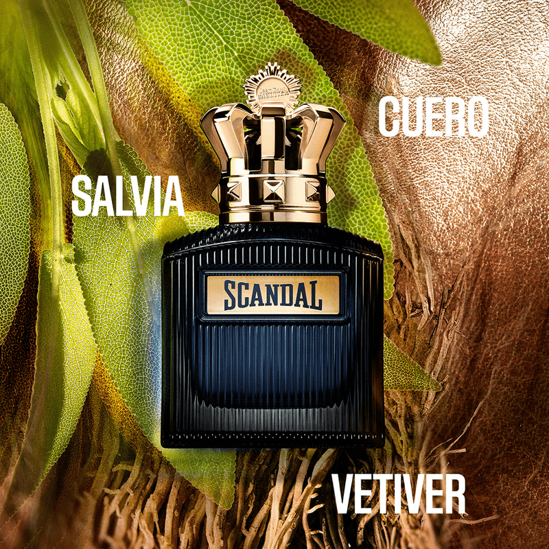 Scandal Pour Homme Intense, una fragancia amaderada de cuero aromática, de placer ilimitado. Eau de Parfum Intense de Quentin Bisch, Christophe Raynaud y Natalie Cetto. Este eau de parfum escandaloso te ofrece un billete solo de ida hacia el deseo. La suavidad del cuero intensamente sensual. El vértigo amaderado del vetiver ardiente. El frescor aromático de la salvia esclarea. Cuanto más se escandalizan los sentidos, más excitante e inolvidable es el viaje. ¡Por una noche infinita!