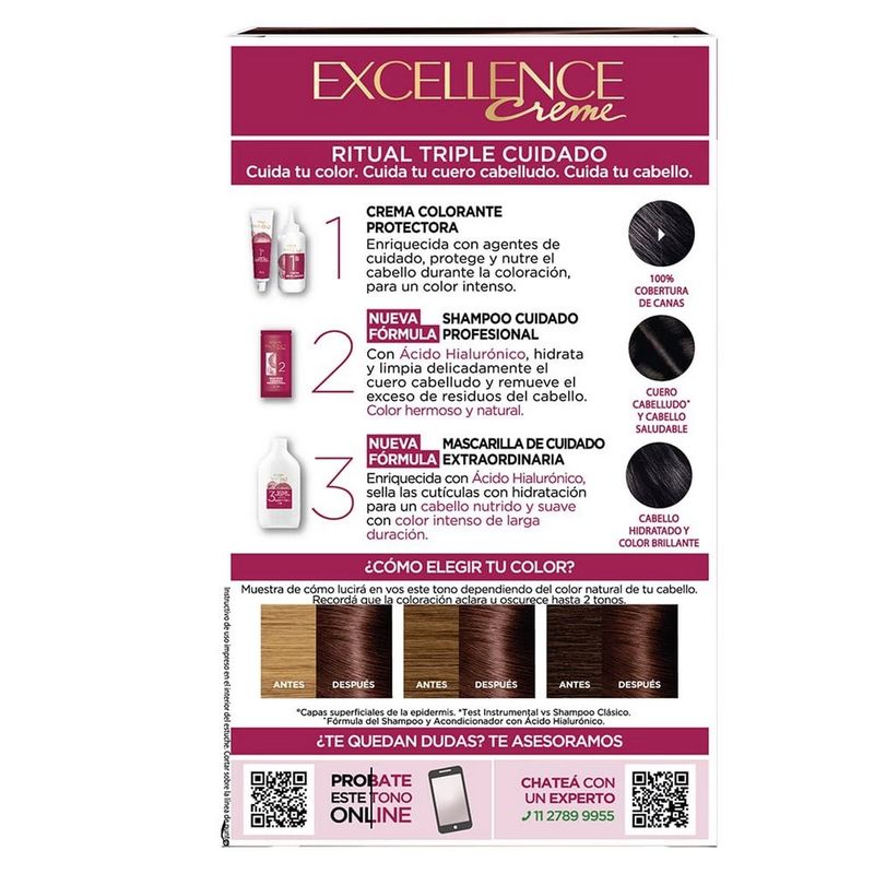 Nuevo Kit de Coloración Permanente Excellence Creme de L´Oreal Paris. Coloración triple cuidado con hasta 100% de cobertura de canas.