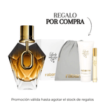 Una adicción cálida y envolvente al sándalo enciende la fantasía dorada sobre un acorde floral ultra femenino, con absoluto luminoso de jazmín y ylang ylang solar.