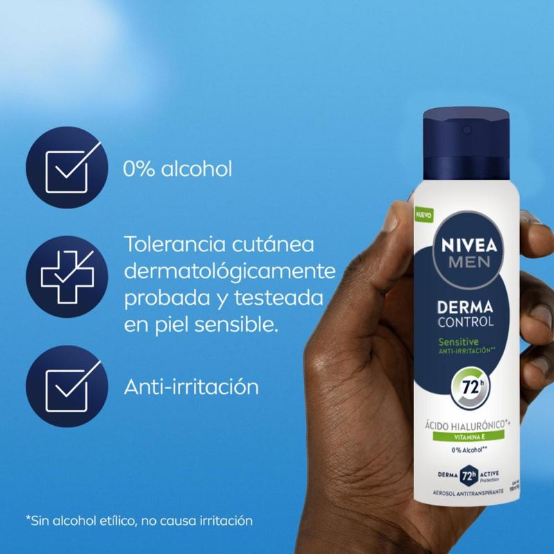 El Desodorante antitranspirante NIVEA MEN Sensitive Protect Max en aerosol brinda 48 horas de protección. Su fórmula contiene Extracto de Manzanilla y Aceite de Palta, ingredientes que ayudan a prevenir la irritación. El antitranspirante de larga duración y sin siliconas ha sido especialmente desarrollado para pieles sensibles.