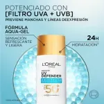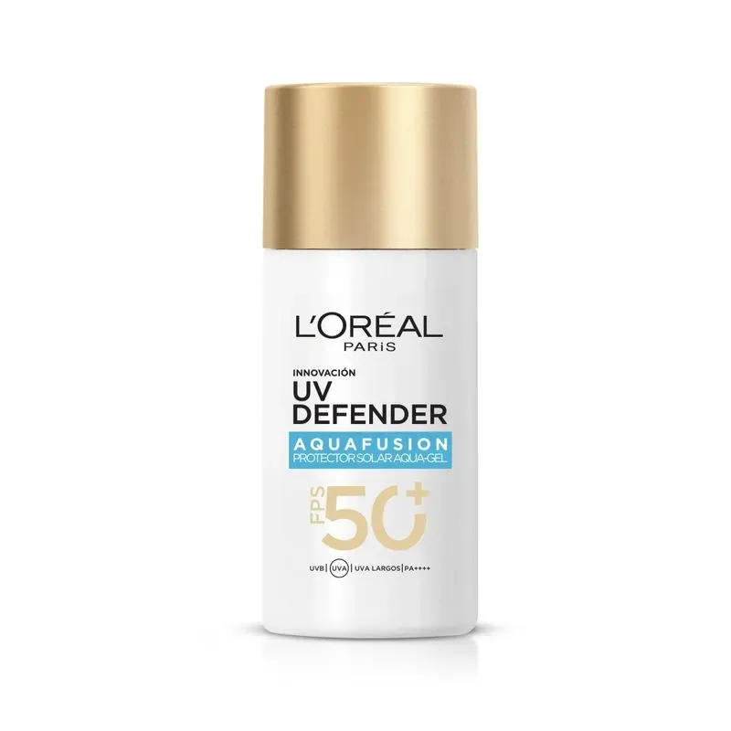 Nuevo Uv Defender Aquafusion Fps 50+. Protector Solar Aqua-gel con textura ligera como el agua, que se absorbe en 3 segundos. Refresca la piel y controla la oleosidad todo el día para una sensación de piel limpia sin dejar residuos blancos. Protege la piel de signos visibles de los daños por rayos UVB y UVA, hidratando por 24hs.