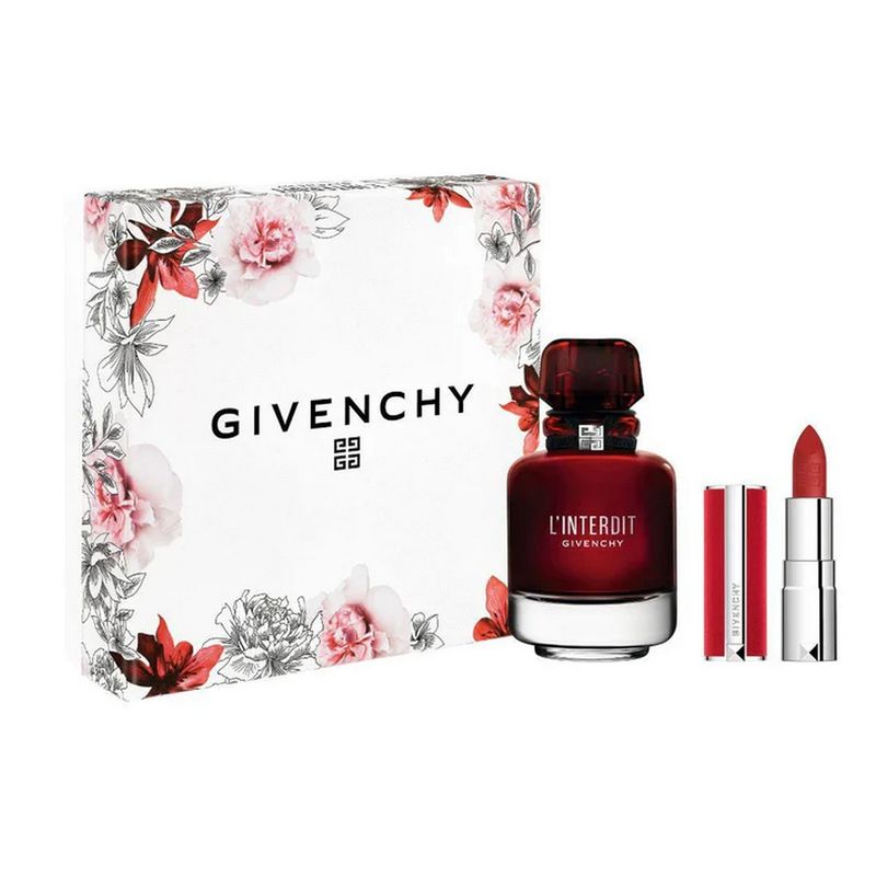 El set incluye: L'Interdit Eau de Parfum Rouge 50 ml Le Rouge Deep Velvet N°37 Ideal para regalar o vivir la experiencia Givenchy en su máxima expresión.